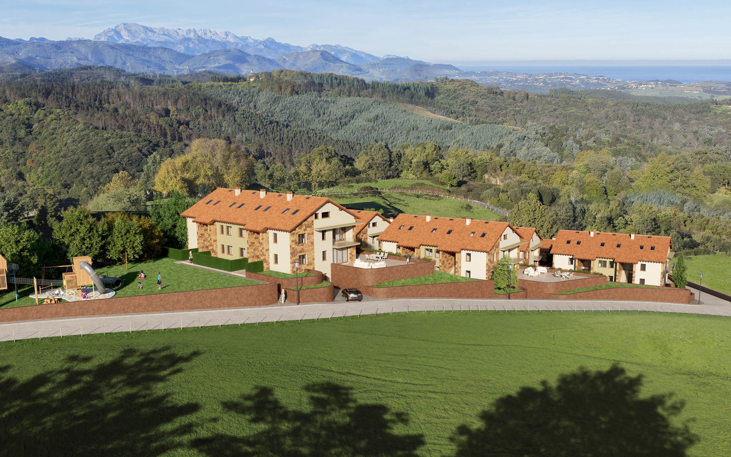 Los majestuosos Picos de Europa coronan el horizonte ofreciendo unas vistas espectaculares que acentuan la fantástica ubicación.